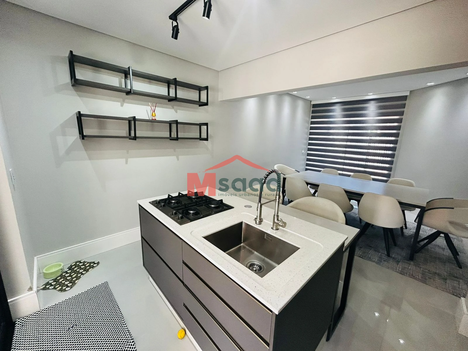 Sala de estar e jantar: Integradas à cozinha, proporcionando amplitude e convivência